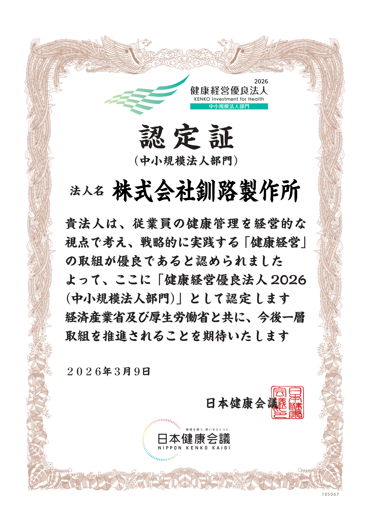 今年も当社は、『健康経営優良法人2026』認定をいただきました。